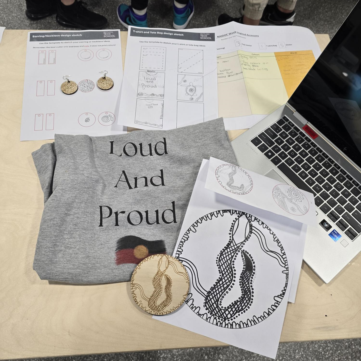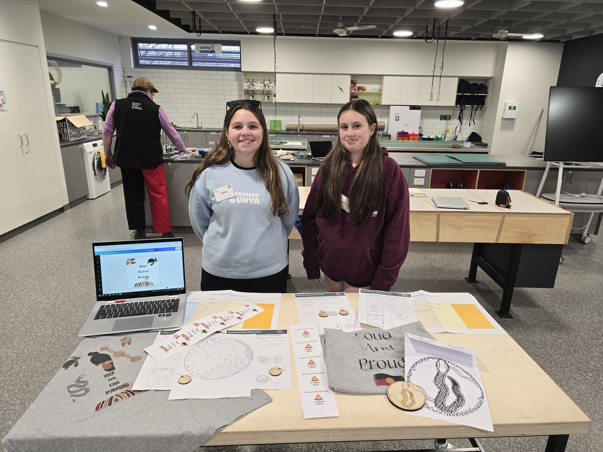 The Koorie Academy of Excellence (KAE) and the Whittlesea Tech School (WTS) partnered again in 2024 to offer KAE students the opportunity to participate in a digital design workshop for NAIDOC week. In this two-day workshop that took place in the first week of the Term 2 holidays, students created an apparel and/or accessory line for NAIDOC week.